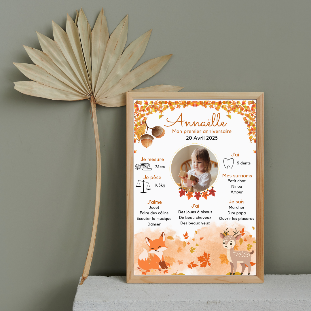 Affiche anniversaire personnalisée 1er anniversaire - affiche photo bébé